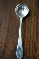 S19 - George III salt spoon, bright cut handle decoration, scallop shell bowl, London 1809